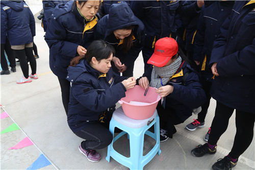 “穿針引線接力賽”和“夾乒乓球比賽”比較有意思,項目充分展現(xiàn)了女工們心思細膩的一面和嫻熟的家務(wù)活兒功底。手捏繡花針,穿針引線,筷子夾乒乓球,分明是練“炸丸子”嘛。參賽隊員情緒飽滿,勠力同心,密切配合,氣氛歡快熱烈而緊張,一場場精彩的比拼把運動會推向一個又一個高潮。尤其是最后一項“搶板凳比賽”,看誰反應(yīng)快,比誰會“搶”,快樂有趣,更是引來一次次加油喝彩,一波又一波歡聲笑語!